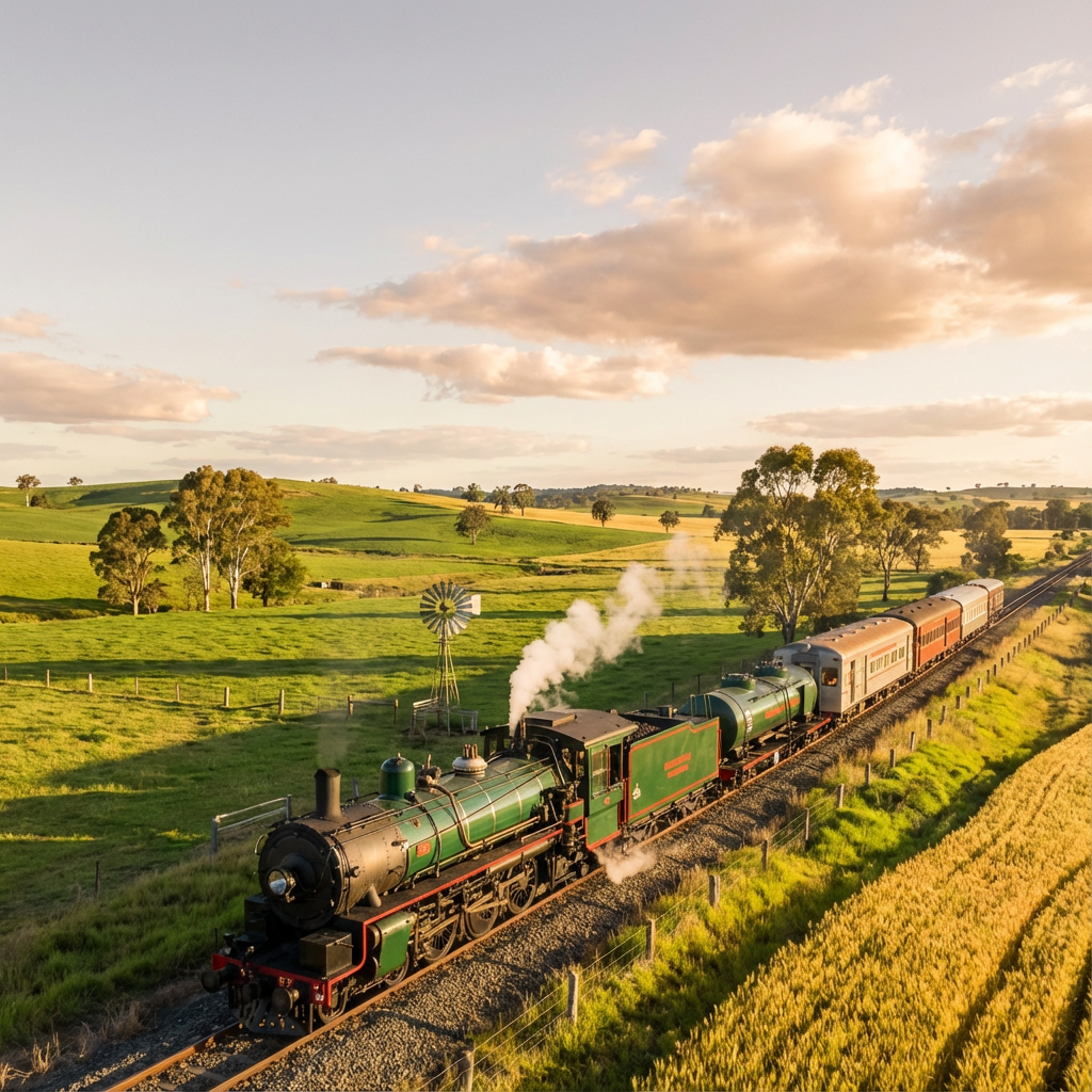 An extended adventure combining heritage rail, silo art, and country hospitality.