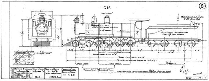 The C16 was a 4-8-0 tender locomotive (twelve wheels in total), built for strength and sure-footed traction on light, winding track. Key features included: