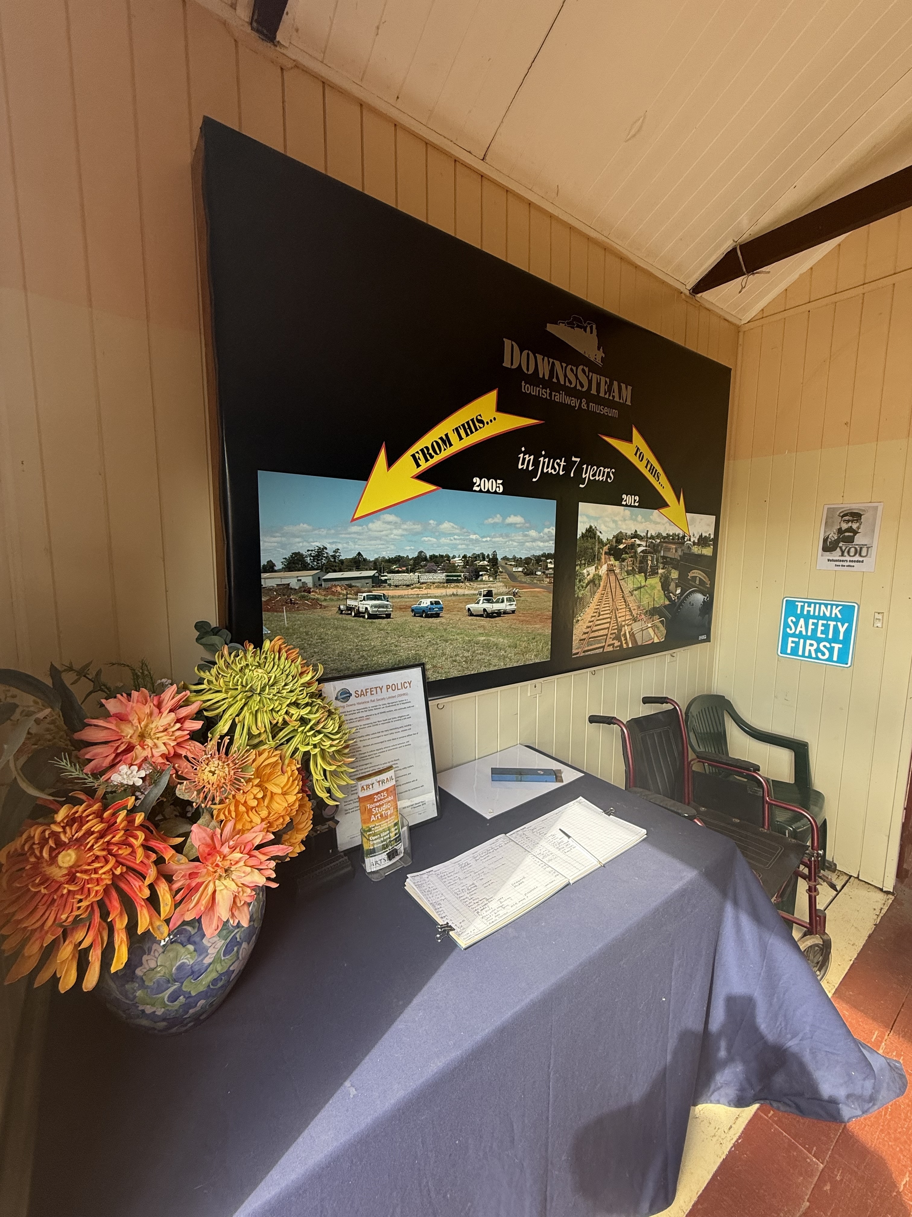 You will find the Cream Shed as you enter the Drayton Railroad Precinct. In fact you have to walk through it! The Cream Shed forms our entrance and the interior has been decorated with various pieces of memorabilia.